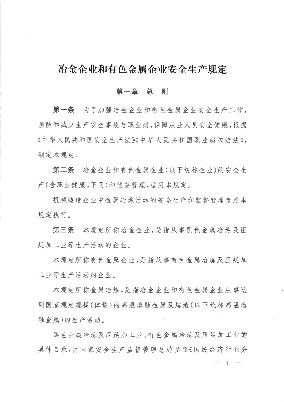 冶金企業(yè)和有色金屬企業(yè)安全生產(chǎn)規(guī)定